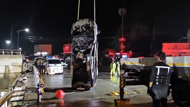 진도 바다에서 인양되는 차량 / 뉴스1 (목포해경 제공)