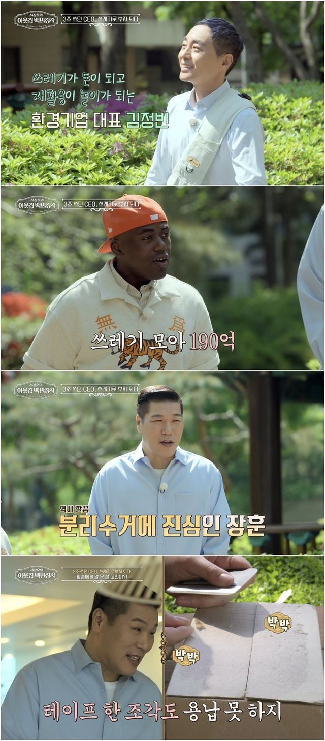 4일 오후 방송되는 EBS, E채널 공동 제작 ‘서장훈의 이웃집 백만장자’(이하 ‘이웃집 백만장자’)에서는 ‘쓰레기 거래’로 화제를 모은 재활용 기업의 대표 김정빈의 인생 그리고 세상과 사회를 향한 시각에 대해 조명해 본다. 김정빈의 회사는 버려지는 페트병을 수거해 석유를 대체할 수 있는 재생원료를 생산하는 업체다. 2024년 연 매출 190억 원을 달성했으며, 기업 가치는 2500억 원에 달한다. 특히 그는 페트병을 넣으면 돈으로 바꿔주는 분리수거 로봇을 개발해, 누구나 쉽고 재미있게 환경 지킴이가 될 수 있는 기회를 제공한다. 전국에 1496대의 분리수거 로봇을 운영하고 있으며, 보상한 총 금액은 54억 원에 달한다.