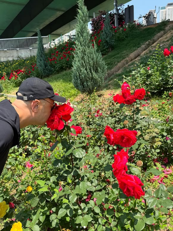 3일 하림은 자신의 SNS에 “투표하고 산책 중. 향이 너무 좋아서 저러고 한참 있는데 아내가 찍어줬다”며 여러 장의 사진을 게재했다.