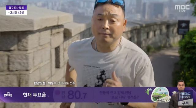3일 방송된 MBC 선거방송 '선택 2025'에서는 각양각색의 러너들이 대한민국의 명소들에서 러닝을 하는 모습과 함께 지역별 투표율이 안내됐다.