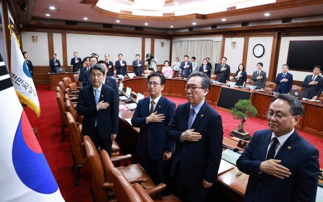새 정부 출범 이후 국무회의에 기존 윤 정부의 인사들도 참여할 전망이다. 헌법 제88조에 따르면 국무회의는 대통령·국무총리와 15인이상 30인이하의 국무위원으로 구성한다‘고 규정하고 있다. 다만 대통령령인 국무회의 규정이 구성원(21명) 가운데 과반(11명)이 참여하면 국무회의를 개의할 수 있다고 정하고 있다. 현재 정부조직법상 국무위원 정원은 19명이지만, 잇따른 사퇴로 의결 권한을 행사할 국무위원은 현재 14명이 남아 있다.