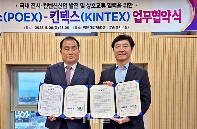 킨텍스와 포항국제전시컨벤션센터(포엑스)가 전시컨벤션산업 육성 등 경쟁력 강화를 위한 협약을 체결했다. 센터 개관을 1년여 앞둔 포엑스의 역량을 높이기 위한 파트너십으로 킨텍스는 20년간 쌓아온 센터 마케팅 등 운영, 행사 개발·유치 경험과 노하우, 네트워크를 포엑스에 공유하기로 했다. 또 포엑스가 글로벌 경쟁력을 갖춘 전시 플랫폼으로 역할을 하는데 필요한 사업 모델 발굴에도 힘을 보태기로 했다. 지난해 7월 착공한 포엑스는 연면적 6만3818㎡(지상 5층·지하1층) 규모로 2026년 말 준공 예정이다.