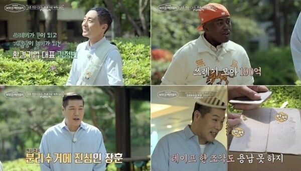 이러한 김정빈 대표를 만난 서장훈은 "제가 분리수거에 진심이다. 제가 사는 걸 보시면 깜짝 놀라실 것"이라며 남다른 '재활용 부심'을 드러내 현장을 놀라게 했다. 그는 자신의 철저한 분리수거 법칙을 공개하며 "페트병의 라벨 접착제 자국은 물론, 종이상자에 붙은 테이프 조각도 전부 긁어내서 버린다"고 밝혀 모두를 경악하게 했다.