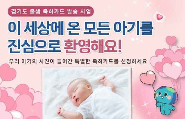 경기도에서 출생신고한 가정을 대상으로 아기의 첫 시작을 환영하고 응원하는 메시지를 담은 축하카드를 전달하는 것으로, “이 세상에 온 ○○를 진심으로 환영해요!”라는 문구를 포함하고 있다.