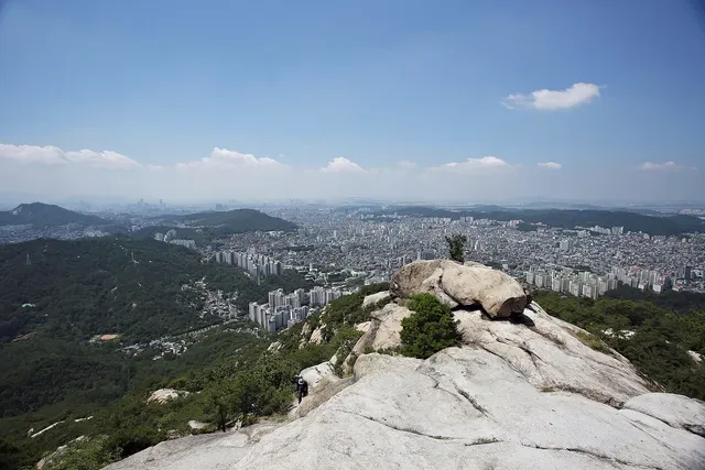 전망 바위에 오르면 서울 전경과 주변 산이 시원하게 펼쳐져 멋진 장관을 감상할 수 있습니다. 슬랩 구간에서는 바위에 기대어 이동해야 하므로, 등산화 등 안전 장비가 꼭 필요합니다. 고된 길을 지나 정상에서 만나는 탁 트인 경치는 등반의 기쁨을 두 배로 만들어 줍니다.