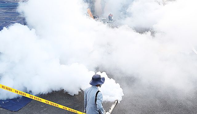 붉은불개미 1000여 마리가 발견된 한 물류창고에서 방제작업이 벌어지고 있다. 기사 이해를 돕기 위한 자료 사진 / 연합뉴스