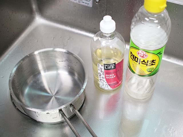 설거지를 할 때 세제에 아예 식초를 섞어서 쓰는거예요.