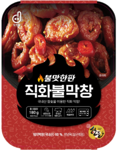 '불맛한판 직화불막창'은 국내산 돼지막창을 참숯 직화 방식으로 구워낸 제품으로, 불향 가득한 깊은 풍미와 막창 특유의 쫄깃한 식감을 자랑한다. 조리된 상태로 제공되는 제품으로, 전자레인지에 간단히 데우기만 하면 바로 즐길 수 있어 조리 부담이 없고, 별도의 손질이나 양념 과정 없이도 전문점의 맛을 그대로 구현한 점이 특징이다.