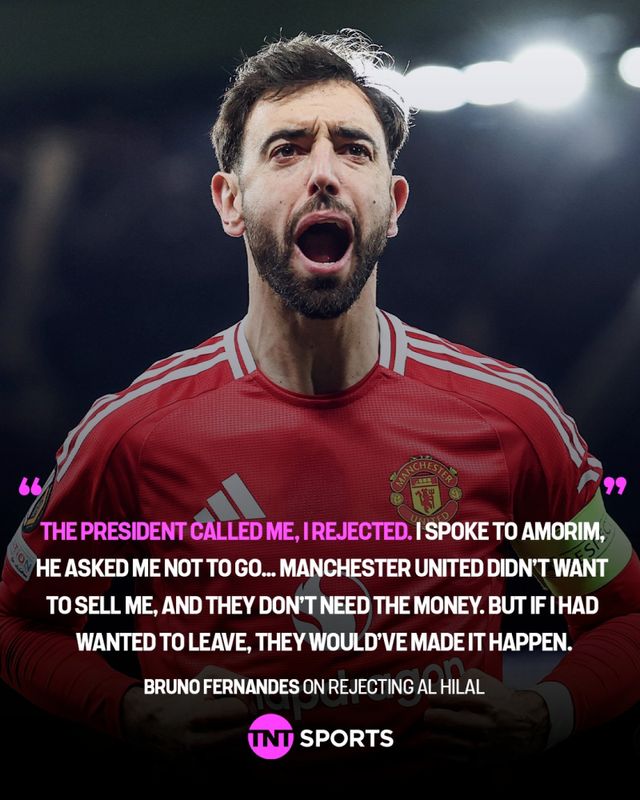 영국 매체 미러는 4일(한국시간) “페르난데스가 알 힐랄의 제안을 거절했다는 사실을 밝히며 후벵 아모림 감독과의 대화 내용도 공개했다”라고 전했다.