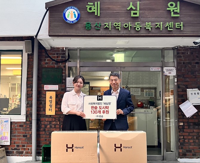 한솥도시락은 ‘따끈한 도시락으로 지역사회에 공헌한다’는 기업 이념 아래 2012년부터 혜심원에 정기적인 후원을 이어오고 있다. 지난 5월에도 어린이날을 맞아 도시락 190개를 지원한 바 있다.