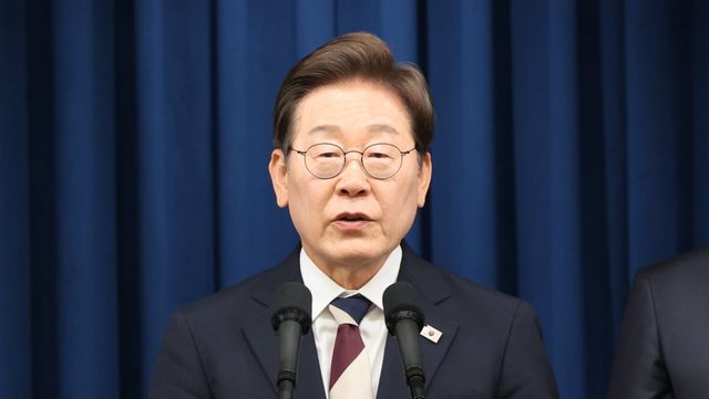 이재명 대통령이 4일 오후 서울 용산구 대통령실 청사 브리핑룸에서 국무총리와 국정원장, 대통령 비서실장 등 인선발표를 하고 있다. 국무총리 후보자로는 김민석 국회의원, 국정원장 후보자로는 이종석 전 통일부장관이 지명됐다. 대통령 비서실장으로는 강훈식 국회의원, 안보실장에는 위성락 국회의원이 임명됐고, 경호처장은 황인권 전 육군 대장, 대변인은 강유정 국회의원이 임명됐다. / 뉴스1