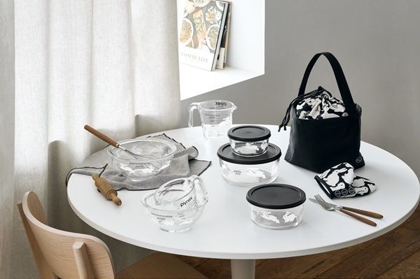 ‘파이렉스 키티버니포니 에디션’은 블랙과 화이트 조합에 키티버니포니의 대표적인 패턴인 검은색 토끼 문양의 ‘리틀 블랙 버니즈(Little Black Bunnies)’ 패턴이 새겨진 디자인이 특징이다. 브런치나 베이킹, 도시락, 피크닉 등 일상의 다양한 식생활에서 활용하기 좋은 구성으로 심플하고 세련된 디자인뿐만 아니라 기능성, 활용성까지 두루 갖췄다.