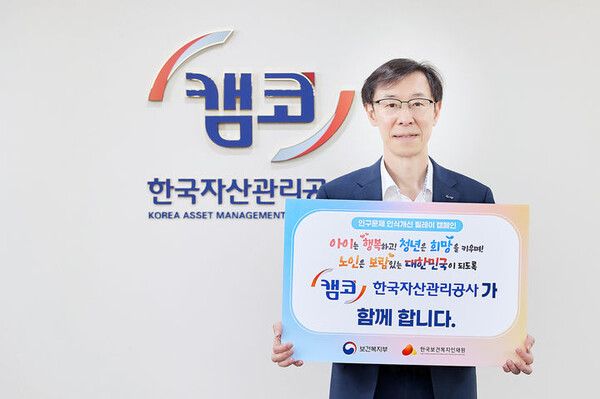 정 사장은 참여를 인증하며 "저출산·고령화 등의 인구문제는 국민 모두가 관심을 가지고 해결해야할 가장 큰 숙제"라며 "앞으로도 캠코는 인구문제 해결을 위한 정부 정책에 적극적으로 협력해 나갈 것"이라고 밝혔다.