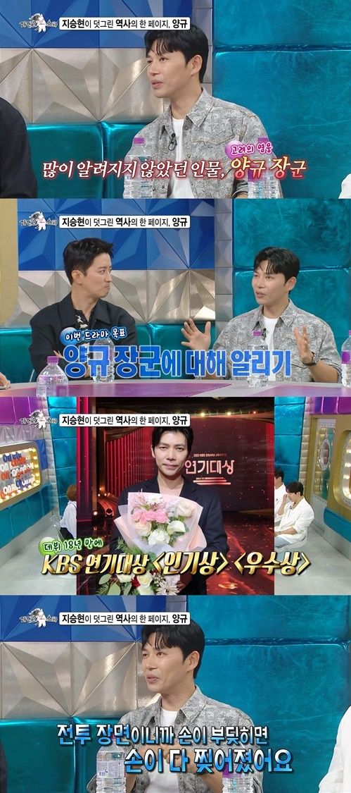 지승현은 “양규 장군에 대해 알리는 것이 목표였다”라며 자신의 역할에 대한 진정성 깊은 모습을 보여준다. 그는 “데뷔 18년 만에 KBS 연기대상에서 ‘인기상’과 ‘우수상’을 동시에 받았다”라며 ‘양규 장군’을 향한 남다른 애정을 드러낸다.