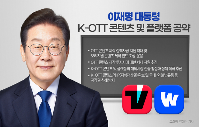 이런 의지는 이 대통령의 대선 공약집에서도 나타난다. 여기에는 ▲OTT 콘텐츠 제작 투자자에 대한 세제 지원 추진 ▲K-OTT 콘텐츠 및 플랫폼의 해외시장 진출 활성화 정책 적극 추진 ▲K-OTT 콘텐츠의 IP(지식재산권) 확보 및 국내·외 불법유통 등 저작권 침해 방지 등의 지원책이 담겼다.