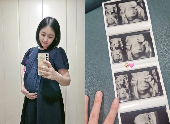 공개한 초음파 사진 속에는 양손을 얼굴에 댄 설복이의 모습들이 담겨 있다. 초음파로도 느껴지는 또렷하고 앙증맞은 이목구비가 시선을 사로잡는다.
