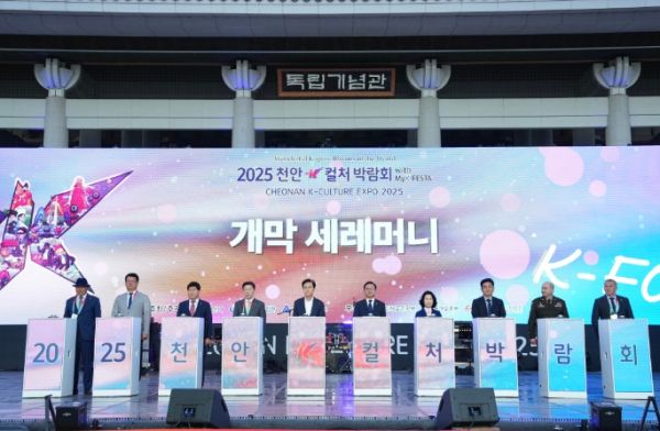 김 지사는 4일 천안 독립기념관에서 열린 ‘2025 천안 케이(K)-컬처박람회’ 개막식에 참석해 “케이(K)-컬처박람회가 세계박람회로 성장하고 천안이 케이(K)-컬처의 중심 무대로 자리매김하도록 아낌없이 지원할 것”이라고 강조했다.