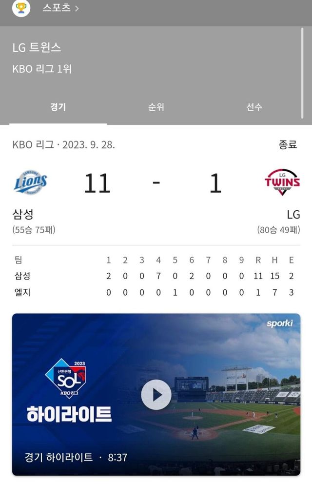 이날 경기 결과그럴만했음