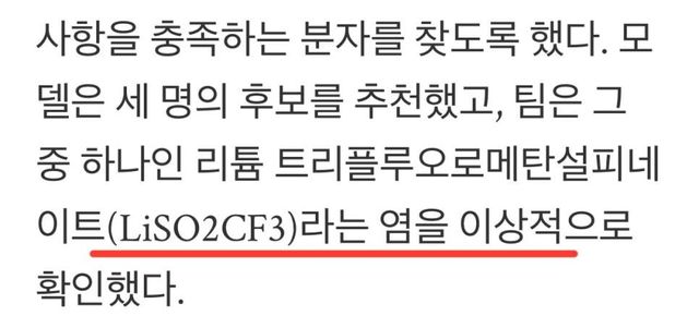 Ai 검색 결과 후보가 3가지나왔고 그 중 LiSO2CF3 라는 염이 나옴