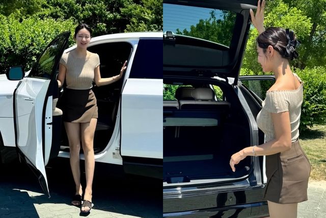 공개된 사진 속 한그루는 몸에 딱 달라붙는 니트톱에 초미니스커트를 입고 있는 모습이다. 새로 뽑은 차가 마음에 드는 듯 이곳저곳을 둘러보고 있는 한그루는 우월한 글래머 자태를 자랑해 눈길을 끌었다. 특히 트렁크를 들여다보고 있는 한그루의 S라인 옆태가 시선을 강탈한다.
