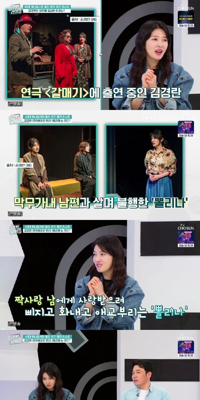 4일 방송한 TV CHOSUN '퍼펙트 라이프'에서는 '아나테이너' 김경란이 연극배우로 활발히 활동 중인 근황을 공개했다.