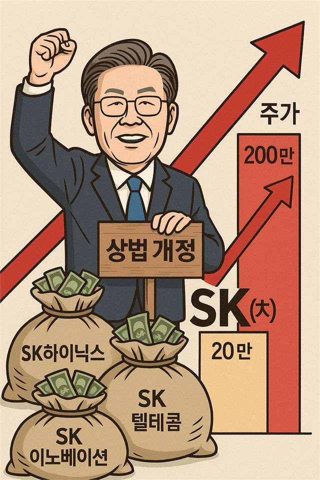이재명 대통령의 상법개정 공약으로 저PBR(주가순자산비율) 지주사들의 재평가 기대감이 커지고 있다. 특히 SK그룹의 지주사인 ㈜SK는 보유 자산 대비 주가가 크게 저평가된 대표적 사례로 꼽히며 주목받고 있다.