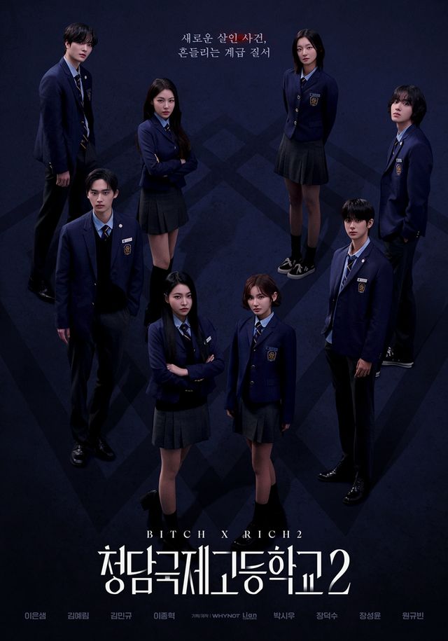 이와 관련 공개된 8인 단체 포스터에는 어두운 배경 위로 '청담국제고등학교 2'를 이끌어갈 주역 이은샘(김혜인 역), 김예림(백제나 역), 김민규(차진욱 역), 이종혁(서도언 역), 박시우(민율희 역), 장덕수(박우진 역), 장성윤(김해인 역), 원규빈(이사랑 역)이 교복 차림으로 한 곳을 응시한 채 서 있는 모습이 담겨 있다. 특히 전작에는 등장하지 않았던 새로운 얼굴과 함께 시즌1 말미 의식불명이었던 김해인 역의 장성윤이 등장해 눈길을 끈다.