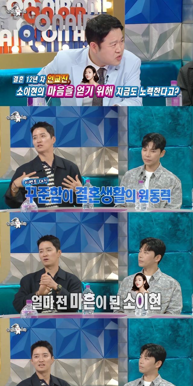 4일 방송된 MBC '라디오스타'에서는 인교진이 출연해 아내 소이현과의 러브 스토리를 공개했다.