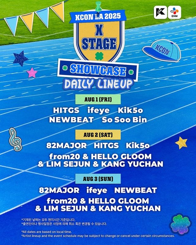 KCON LA 2025 쇼케이스 라인업에는 △82메이저 △힛지스 △이프아이 △키코 △뉴비트 등 K-POP 신예를 비롯해, 감성 싱어송라이터 △소수빈, 웨이베러 레이블 소속 △프롬트웬티 △헬로글룸 △강유찬 △임세준 등 총 10팀이 포함됐다.