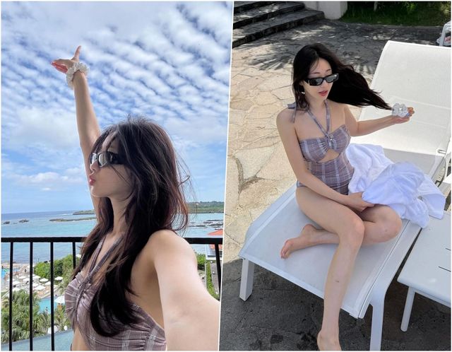 사진 속 경리는 수영복을 입고 늘씬한 각선미를 자랑하는 모습이다. 특히 가슴 아래 부분이 트인 디자인으로 마치 비키니처럼 연출된 것은 물론, 볼륨감을 강조하는 디자인으로 경리의 글래머러스한 몸매 역시 돋보여 시선을 사로잡았다.