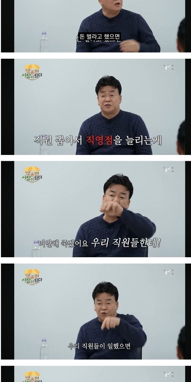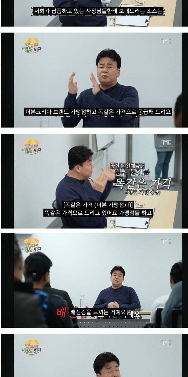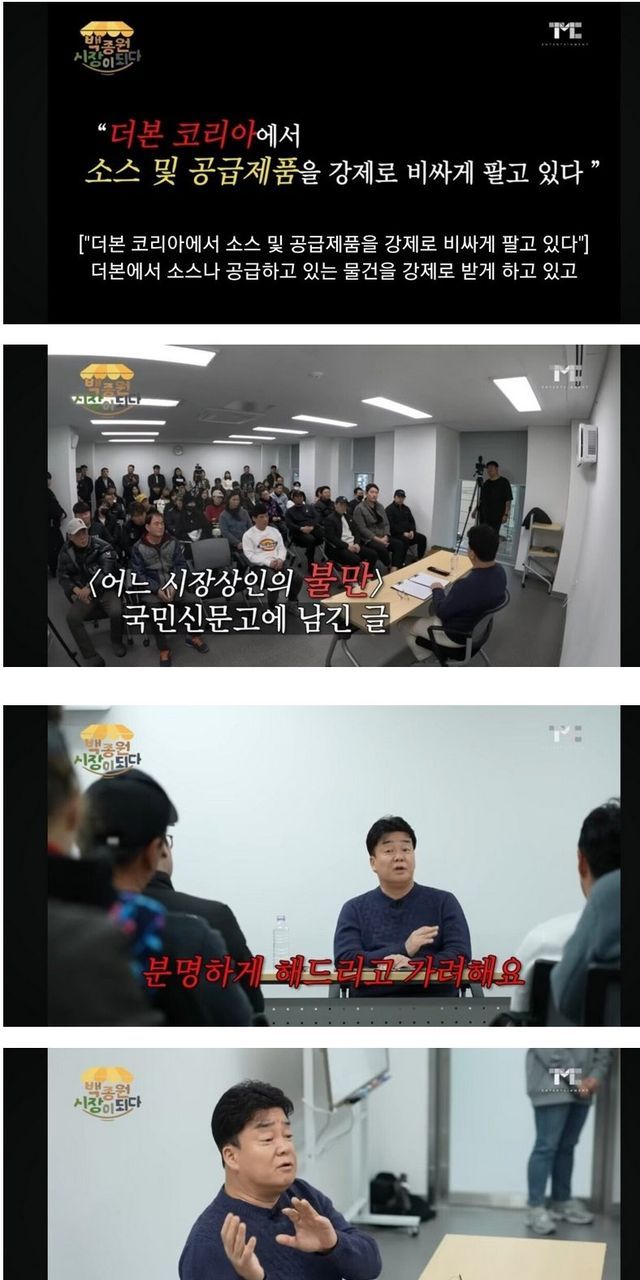 그런 세입자들에게 내가 직접 가게 넣어서 장사하면 돈을 더 벌수 있는데 사장님들 위해서 그냥 월세 주고 하는거에요 라면서 더본 소스 강매하는게