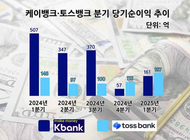 5일 업계에 따르면 케이뱅크와 토스뱅크는 올해 1분기 당기순이익으로 각각 161억원, 187억원을 기록했다.