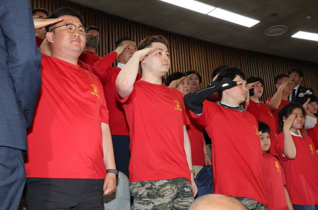 이날 예비역 단체복인 붉은 셔츠를 맞춰 입은 해병대 예비역 50여 명은 본회의장 방청석에 앉아 법안 표결을 지켜봤다.