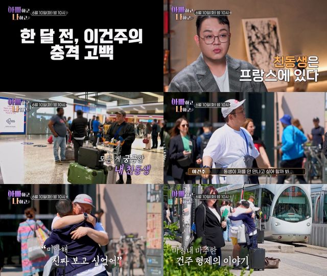 앞서 힘겨웠던 가정사를 공개한 이건주는 ‘아빠하고 나하고’를 통해 친어머니와 44년 만에 만나 오해를 풀며 가까워졌다. 이어 이건주는 “고모가 저보다 2살 어린 친동생이 있었다고 하더라. 태어나자마자 복지기관을 통해서 입양된 걸로 들었고, 지금은 프랑스에 있는 걸로 알고 있다”고 충격적인 사실을 공개한 바 있다.
