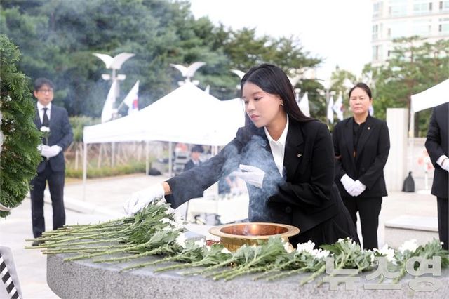 김소진 의원이 지난 현충일, 현충탑에서 참배하고 있다./사진=수원특례시의회
