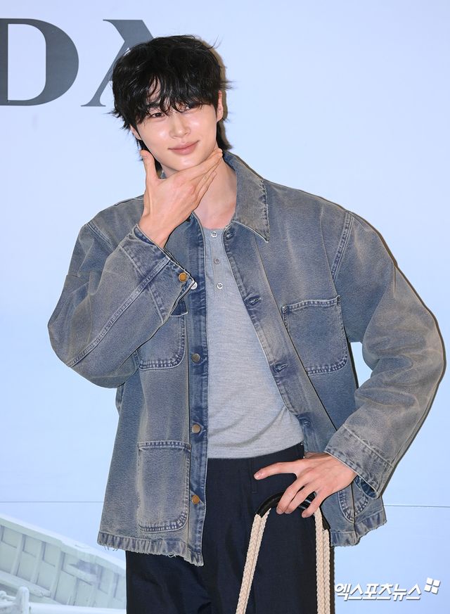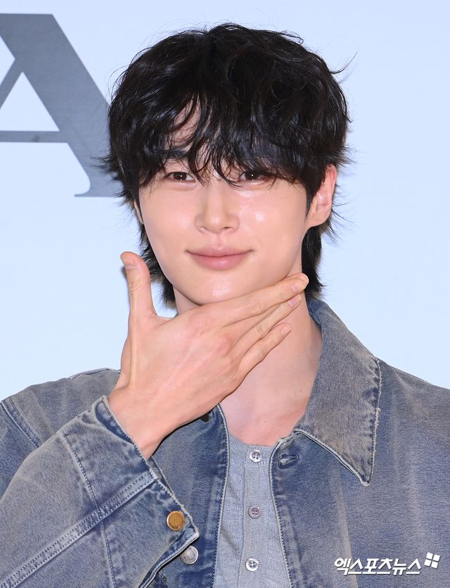 이날 행사에 참석한 배우 변우석이 포토타임을 갖고 있다.