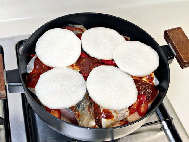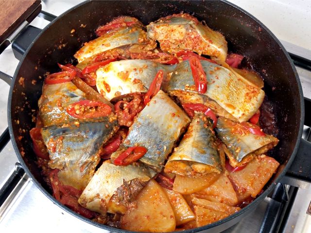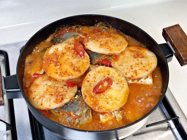 고등어가 잠길만큼만 알맞게 물을 부어주세요.