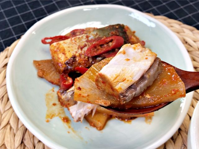 촉촉한 고등어 살에 진한 양념이 그득하게 배서