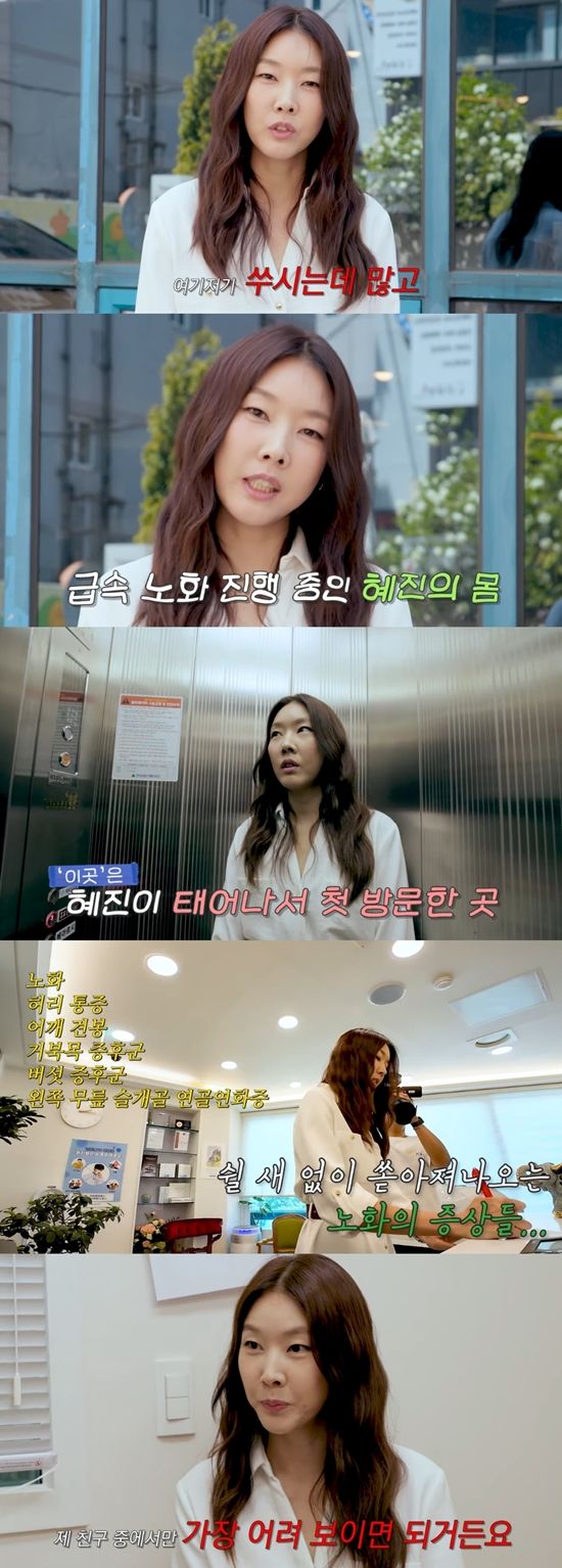 영상을 시작하며 한혜진은 "저는 지금 종로에 나와 있다. 여길 한 번 왔다가 가면 굉장한 미인이 될 수 있다는 소문을 듣고 왔다"고 말했다. 이어 그는 "여기저기 쑤시는데 많고 노화가 급속도로 진행 중이다"라고 밝혔다.