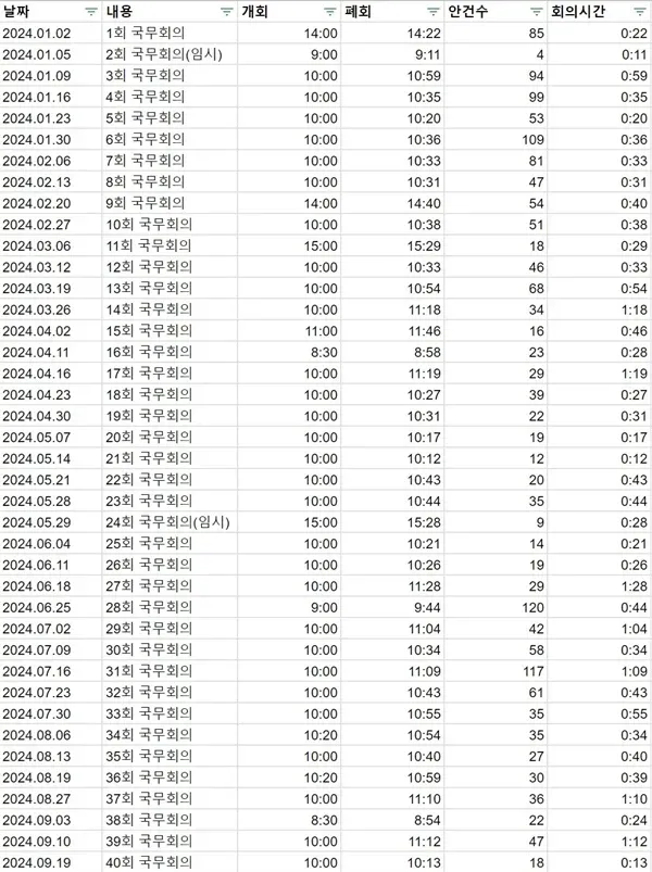 2024년 국무회의 평균시간 : 40분