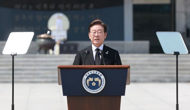 이재명 대통령이 서울 동작구 국립서울현충원에서 열린 70회 현충일 추념식에서 추념사를 하고 있다. ⓒ 연합뉴스