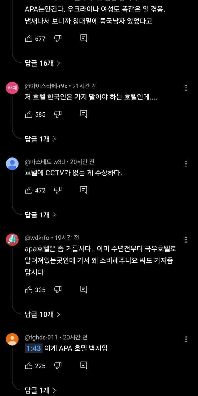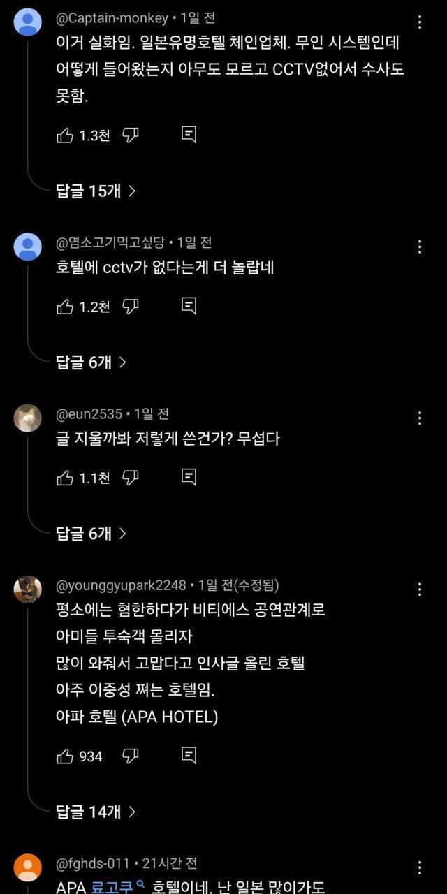 제발 쪽본 여행 가지도 말고, APA 같은 개쓰레기는 이용을 하지 마라 좀