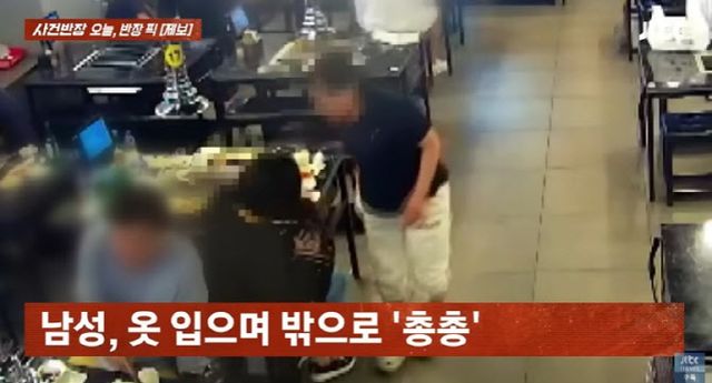 가게 내부에 설치된 CCTV를 보면, 식사를 마친 후 일행 중 남성이 먼저 겉옷을 입고 밖으로 나간다. 이어 여성 2명도 다른 손님들 틈을 스쳐 지나가며 자연스럽게 가게 밖으로 향했다.