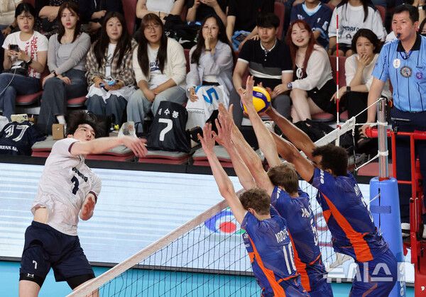 한국은 아웃사이드 히터 허수봉(현대캐피탈)이 13점, 김지한(우리카드)이 12점, 아포짓 스파이커 임동혁(국군체육부대)이 10점으로 분전했지만, 끝내 전력 차이를 극복하지 못했다.