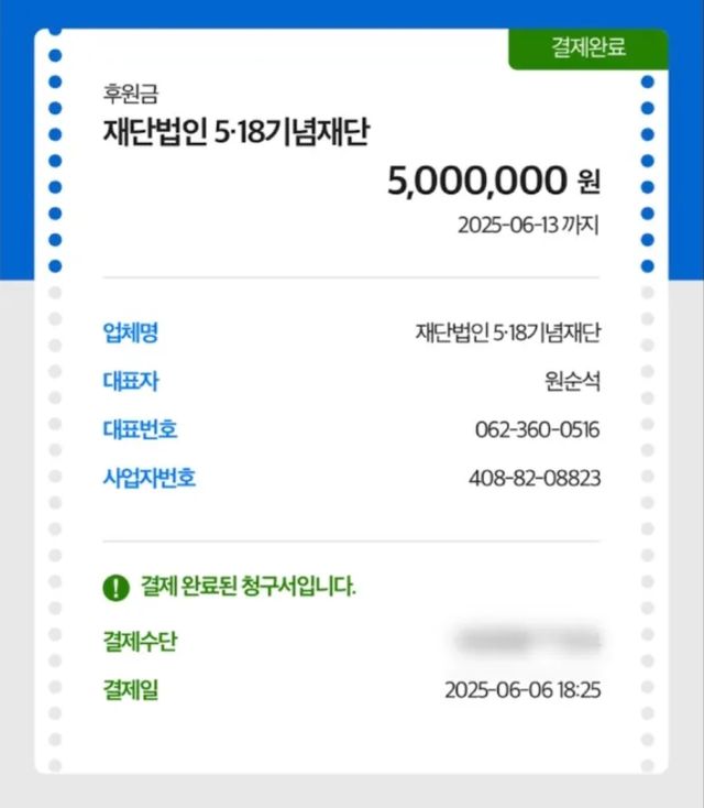 (엑스포츠뉴스 이창규 기자) 지역 비하 발언으로 물의를 빚고 사과문을 올린 유튜버 잡식공룡(본명 왕현수)이 재단법인 5·18 기념재단에 기부를 했음을 알렸다.