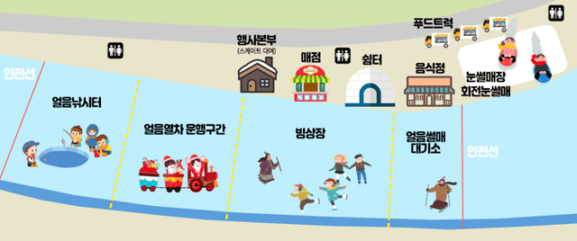 - 얼음열차: 빙상장과 낚시터 중간에 위치해 재미를 더합니다.