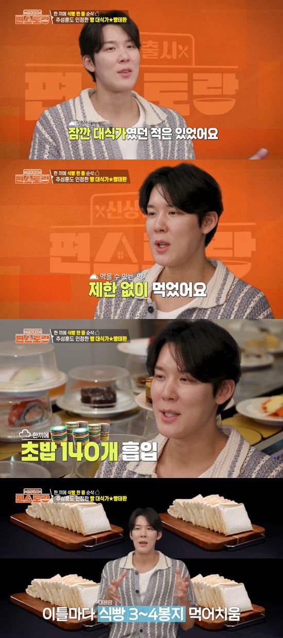 이어 "회전 초밥집에 간 적이 있는데, 60~70접시를 먹었으니까 140개 정도를 먹었을 것"이라면서 "이틀에 한 번씩은 빵을 꼭 샀다. 식빵 한 줄을 하루에 다 먹기도 했다"고 이야기했다.