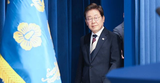 이재명 대통령이 지난 4일 서울 용산구 대통령실 청사 브리핑룸에서 국무총리와 국정원장, 대통령 비서실장 등 인선발표를 하기 위해 입장하고 있다 / 뉴스1