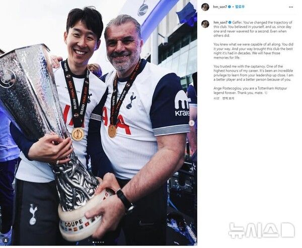 마지막으로 손흥민은 "포스테코글루 감독, 당신은 토트넘의 영원한 전설이다. 감사하다"며 끝을 맺었다.