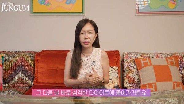 그녀는 "아침을 8시 전에 일찍 먹고, 점저(점심+저녁)처럼 중간에 먹는 편이다. 저녁을 5시 전에 먹는다"며 식사량 조절과 규칙적인 식사 시간 관리가 몸매 유지에 중요함을 강조했다.